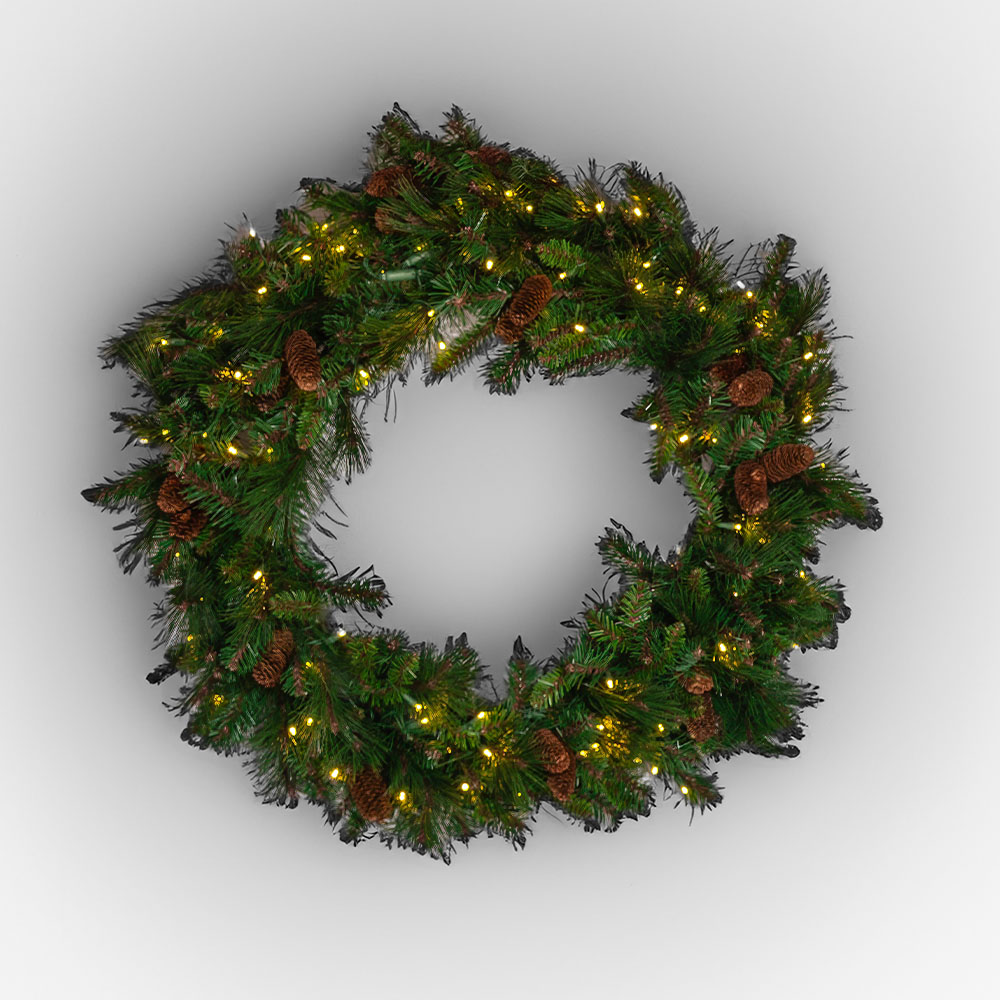 The 18″ Warm White Noble Wreath is a holiday staple that combines traditional greenery with modern lighting convenience. Pre-lit with energy-saving warm white LED bulbs, this wreath delivers a soft, inviting glow perfect for creating a festive atmosphere. Its realistic noble pine design makes it an attractive decoration even during the day, while the lights make it come alive at night. At 18 inches, it’s versatile enough to use on doors, windows, or interior walls. Crafted with durable materials, the wreath is designed to last season after season without losing its fullness.